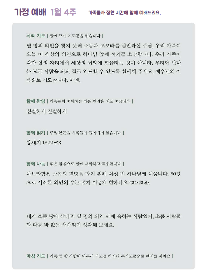 *가정예배지는 '매일성경'의 가정예배 순서지로 가정예배 드릴 수 있습니다.