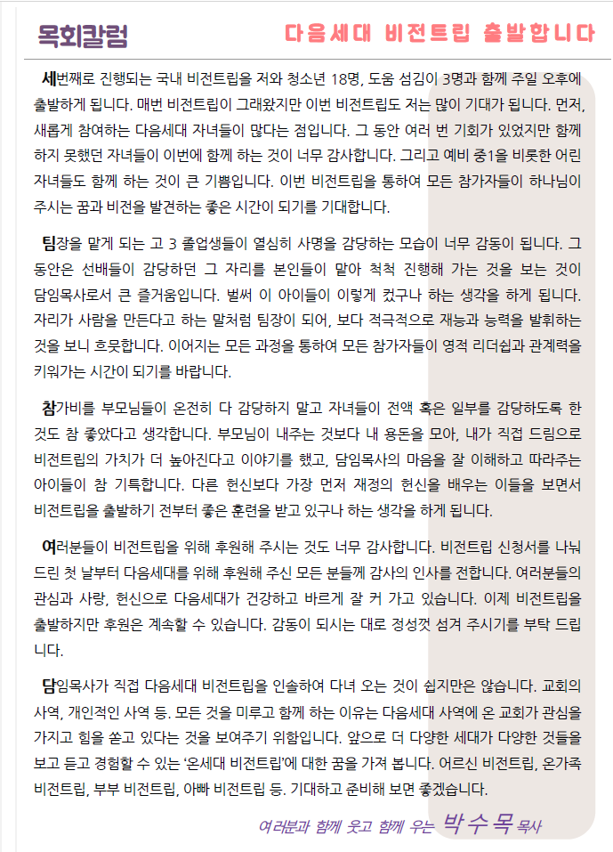 다음세대 비전트립 출발합니다.