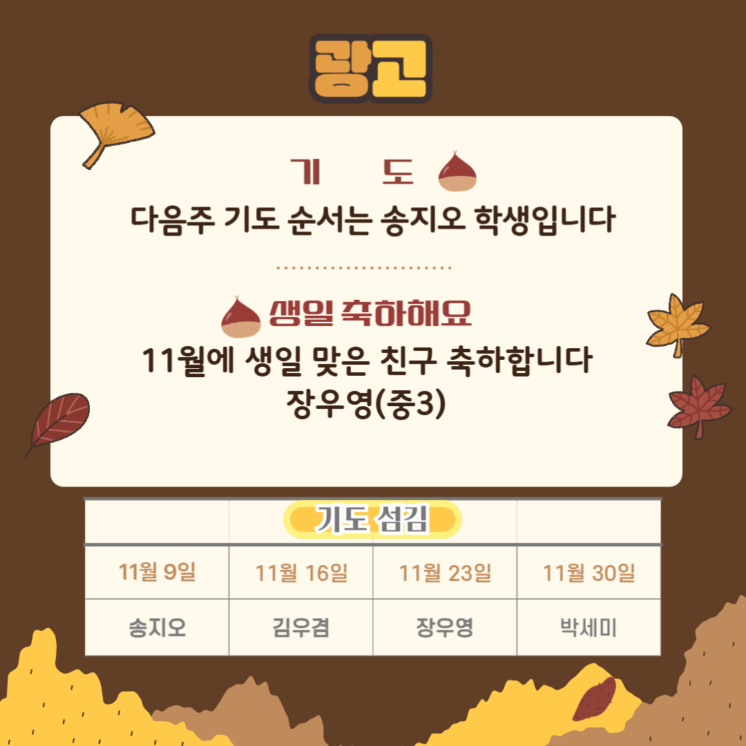 25년 11월2일 청소년부 주보