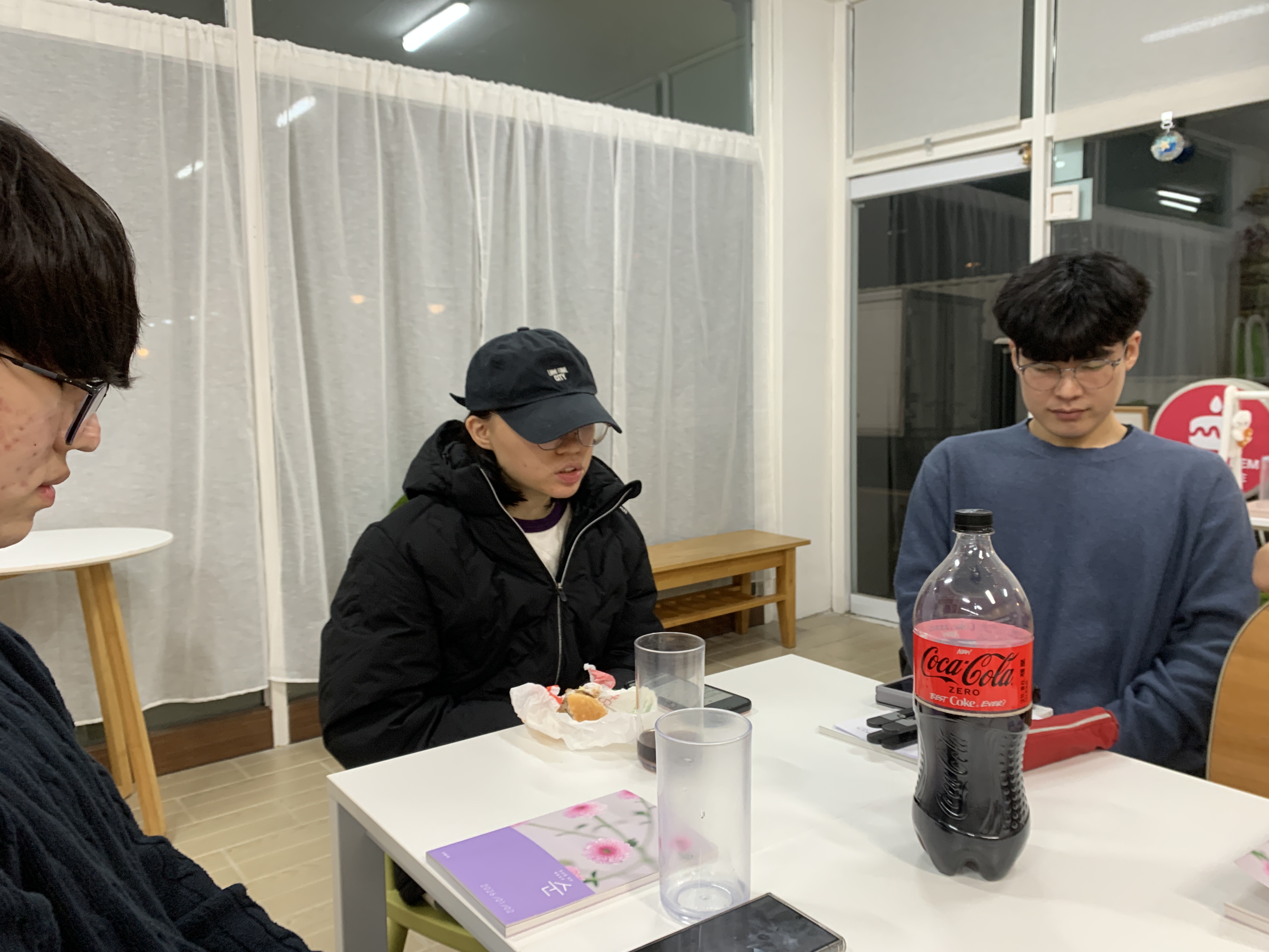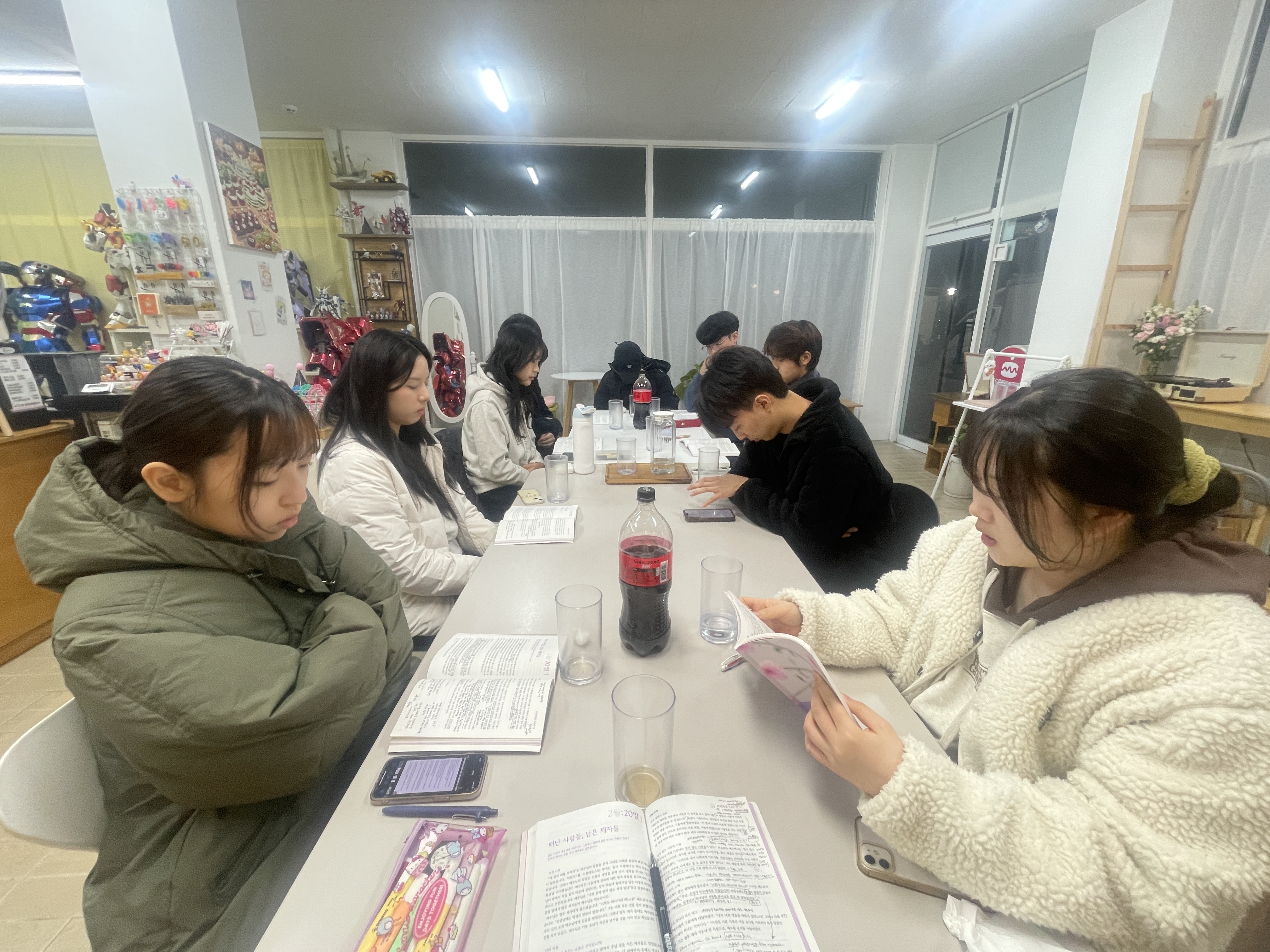 오늘 청년목장 모임은 특별히 말씀의 은혜가 가득한 시간이였어요. 소리가 작아서 폰 두 개로 동시에 오말묵을 틀어 함께 묵상을 했는데, 모두 목사님께서 전해주시는 말씀이 너무 좋다며 감사함을 나누었어요! 또 2월 생일자인 성령이와 호열오빠의 대학교 졸업을 축하하고 둘을 위해 기도하며 의미있는 파티를 했답니다 ㅎㅎ
