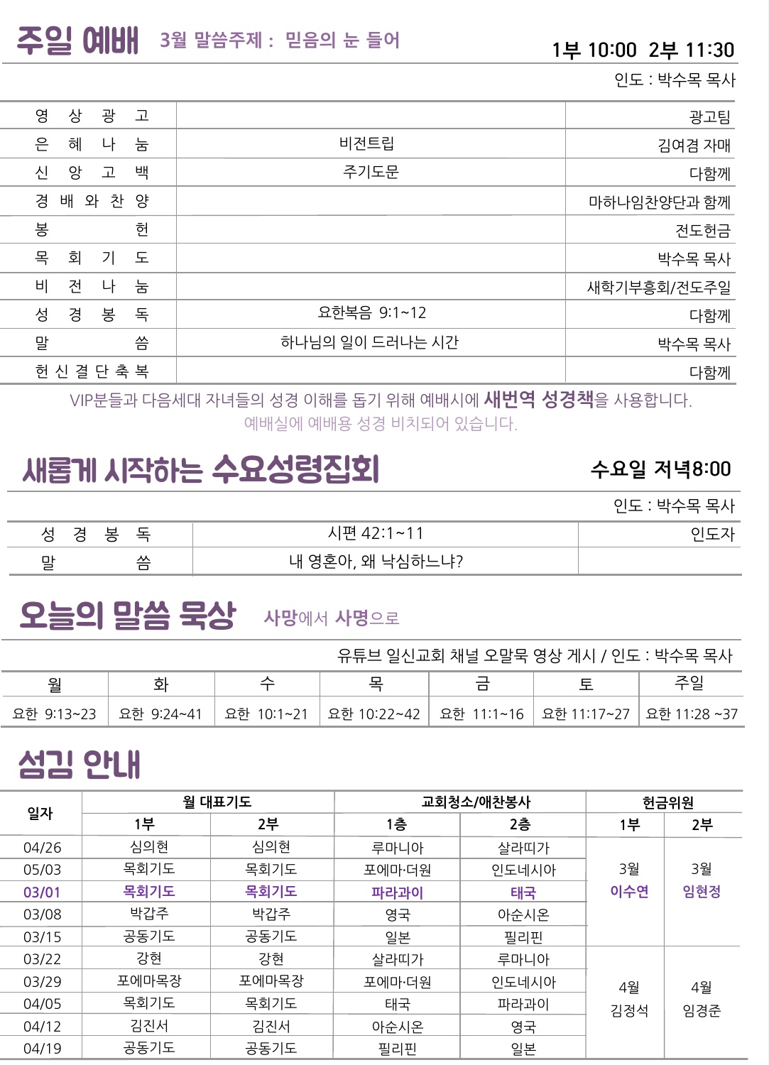 예배안내