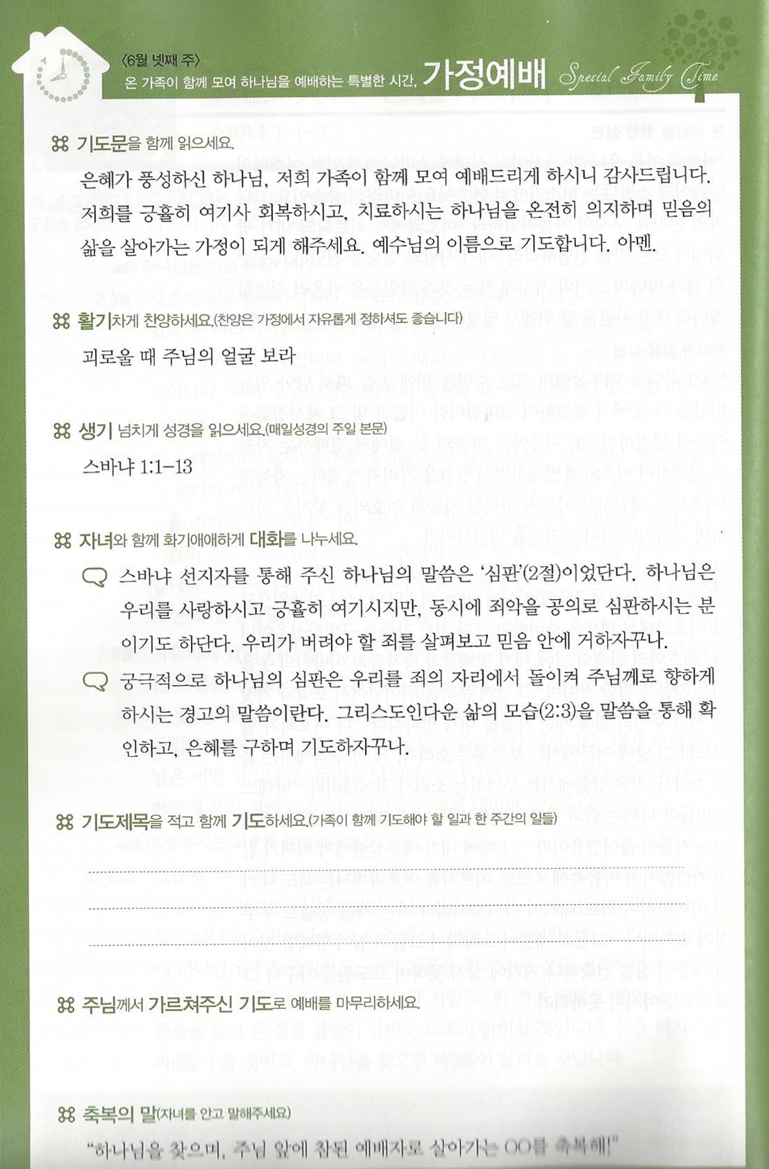*가정예배지는 '매일성경'의 가정예배 순서지로 가정예배 드릴 수 있습니다.