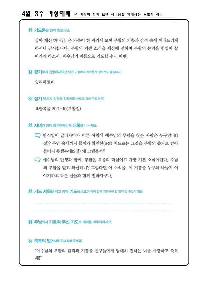 | 4월 3주 가정예배 순서지 | 운영자 | 2017-04-15 | |||