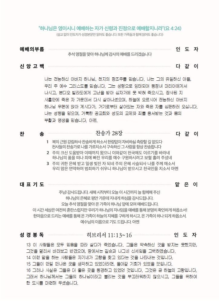 | 추석가정예배 순서지 | 운영자 | 2020-09-26 | |||