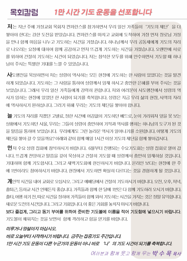 1만 시간 기도 운동을 선포합니다