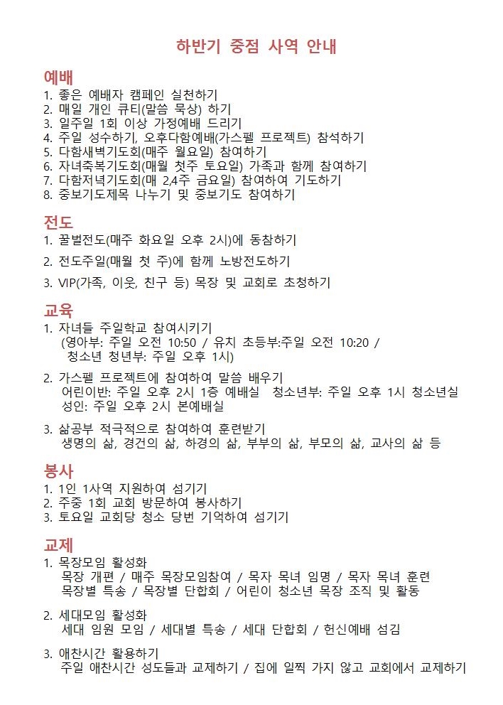 하반기 중점사역 안내