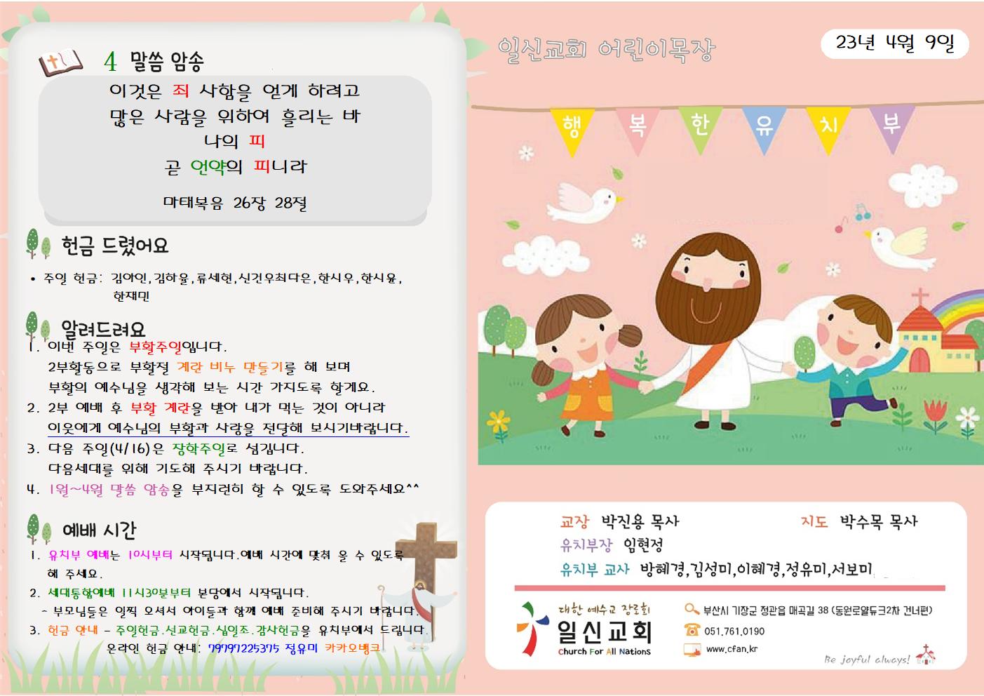 2023년 4월9일 유치부 주보