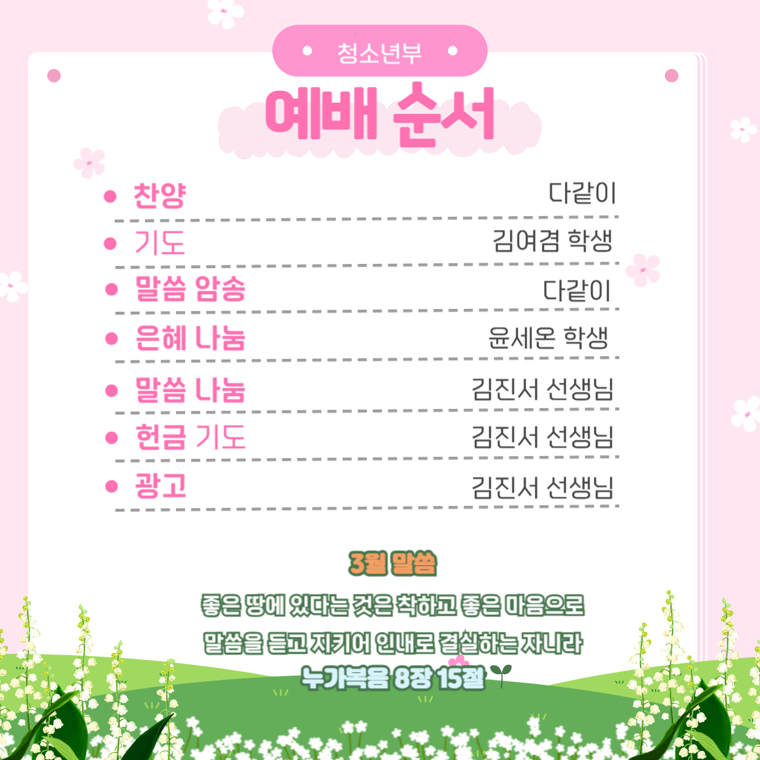 25년 3월2일 청소년부 주보