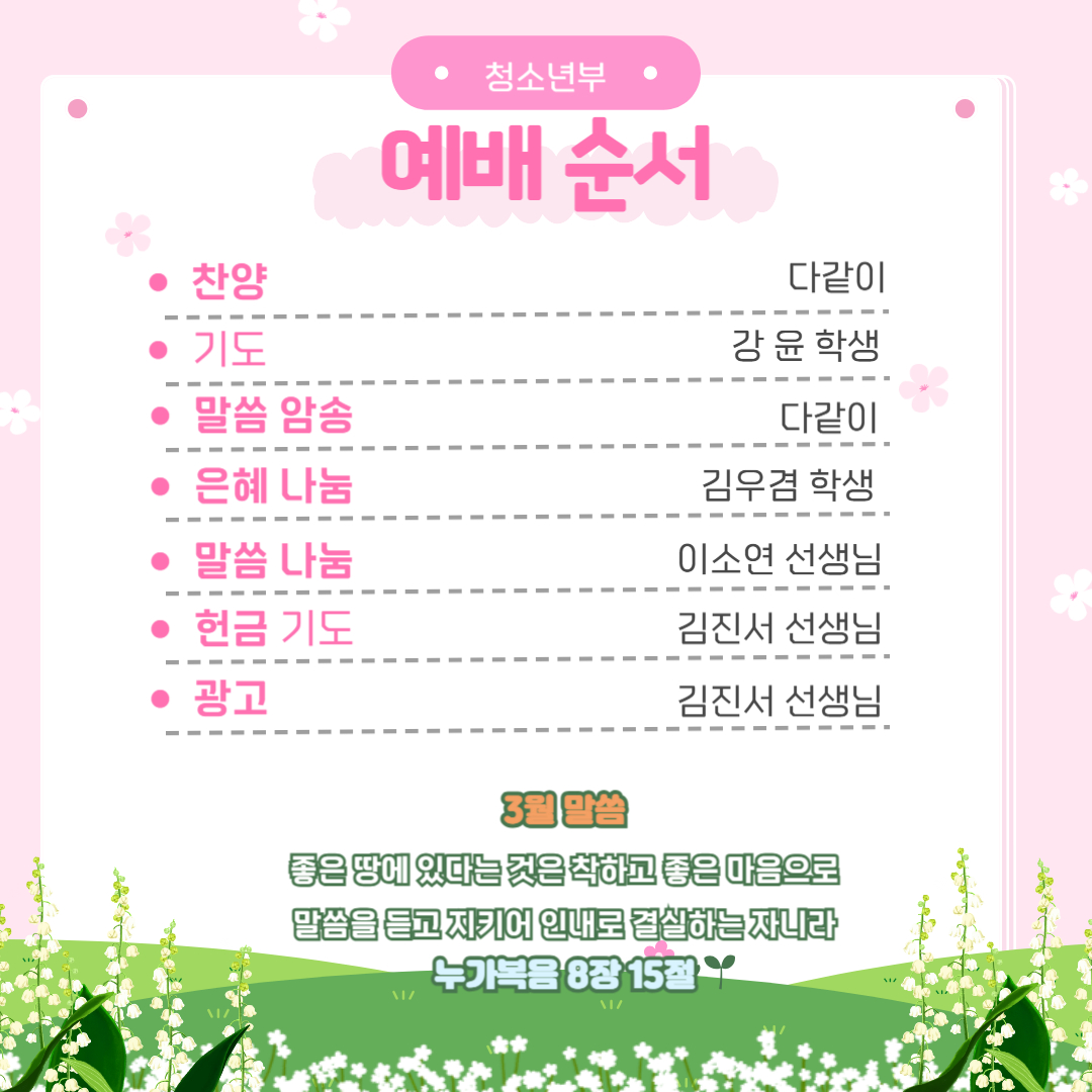 25년 3월9일 청소년부 주보