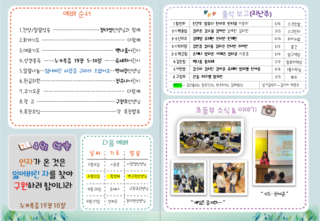 2025년 4월 6일 유초등부 주보