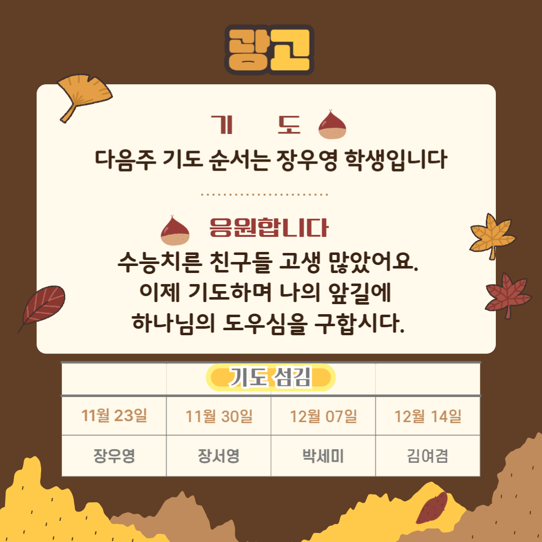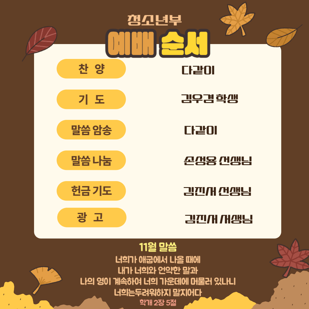 25년 11월16일 청소년부 주보