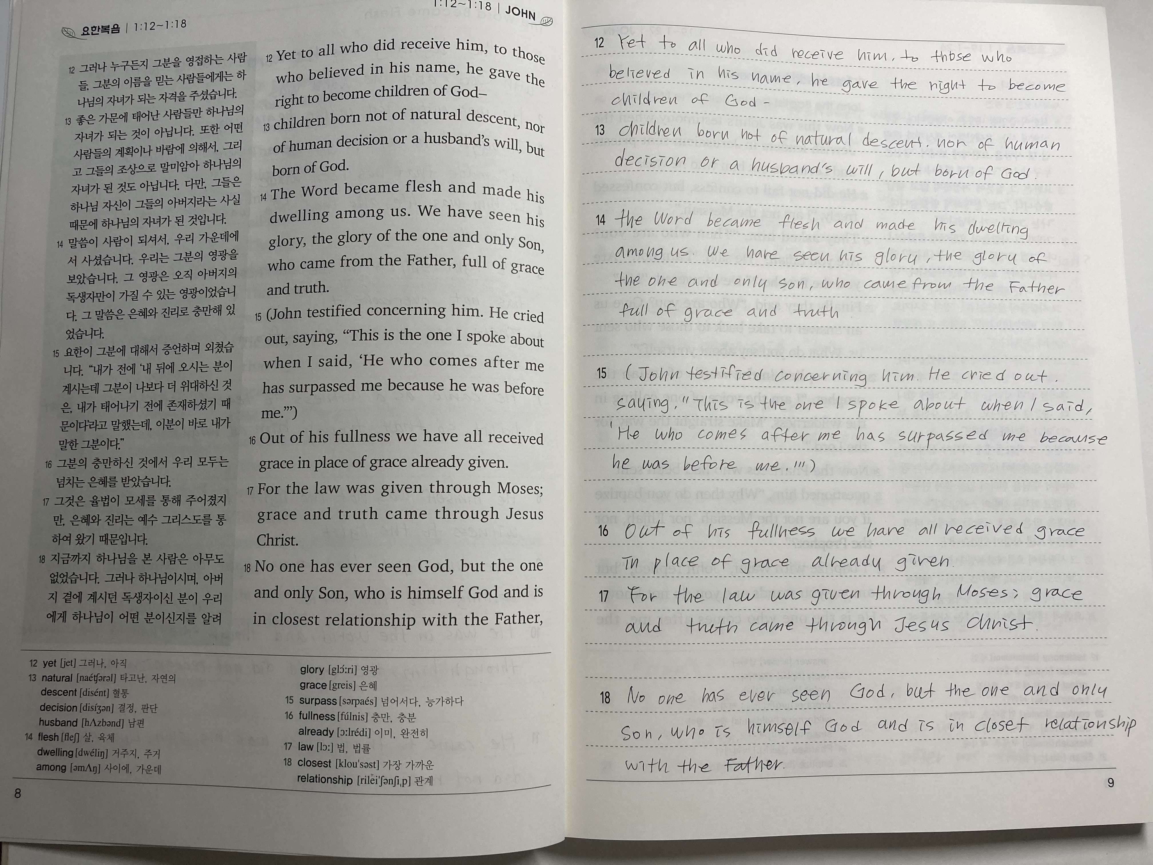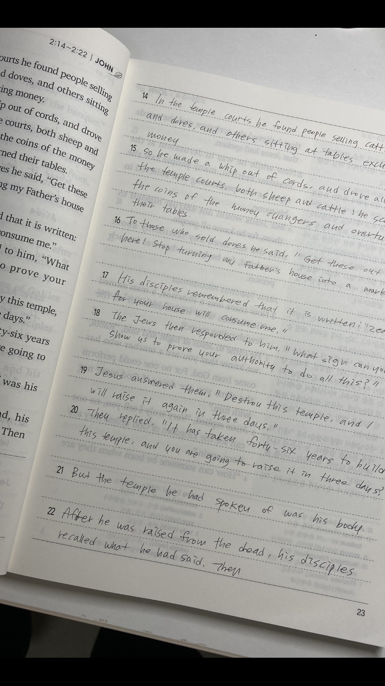 고등학생 큰 딸 박세인 요한복음 영어 필사를 통해 큰 도전이 되기를 축복해요.