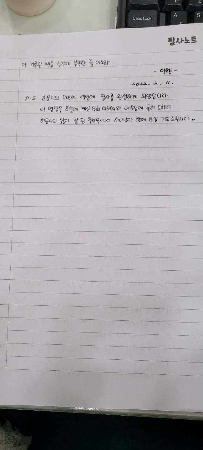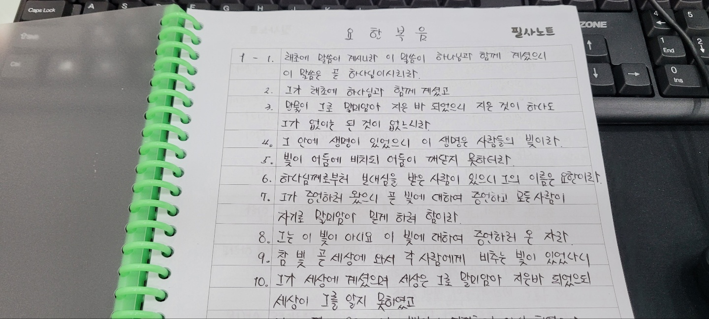 어린 나이에 필사를 한다며 열심인 아들을 보며, 많은 것을 깨닫고 은혜받고 감사했습니다.
