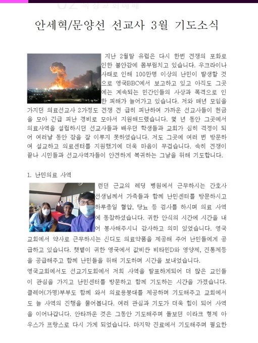 안세혁/문양선 선교사님 3월 기도소식