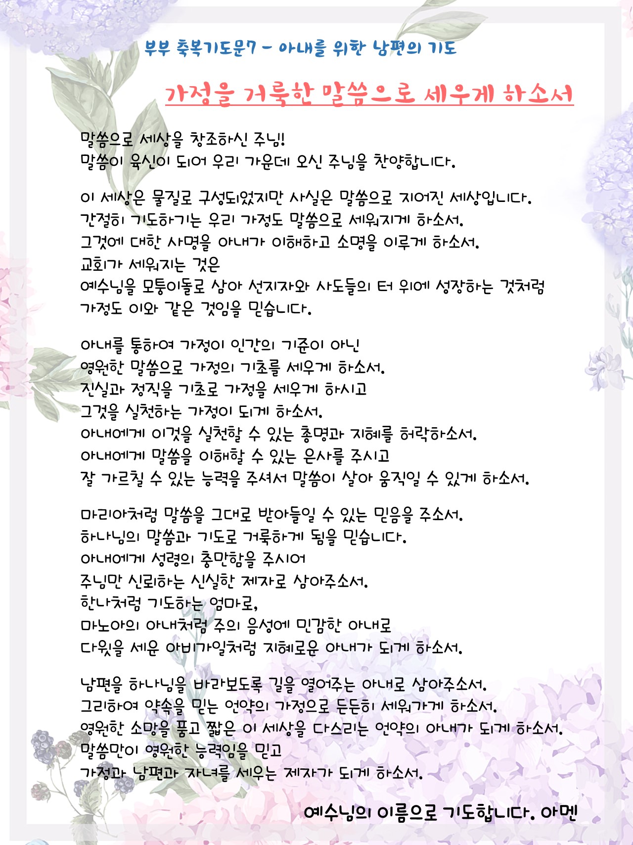 부부(가정행복)축복 기도문7