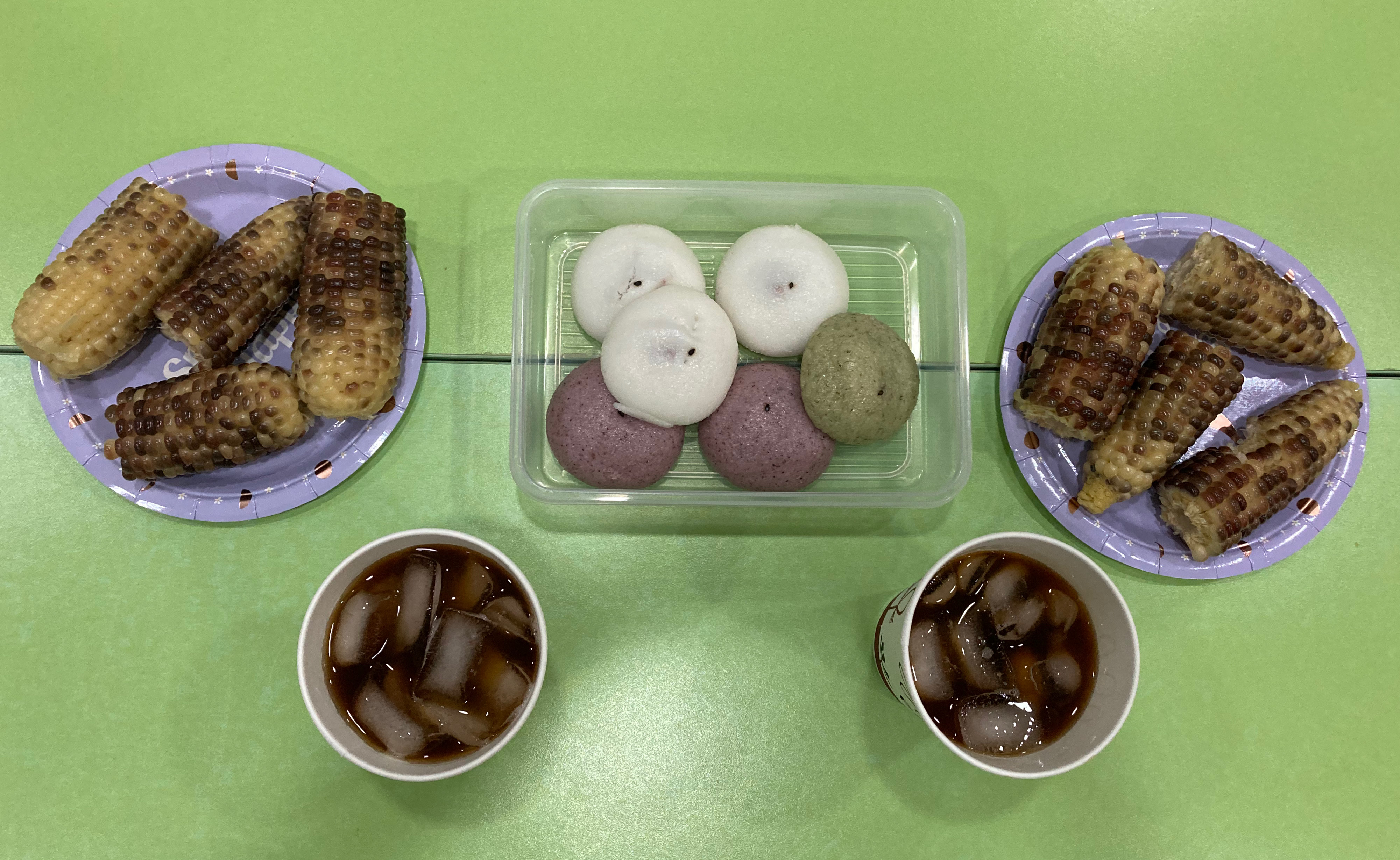 이번주는 미란 집사님께서 시원한 아이스커피와 맛있는 떡과 옥수수를 간식으로 챙겨와 주셔서 밥을 먹은뒤 배가 부른상태였지만 아주 맛있게 먹었어요~ㅎㅎ 아주 별미였고 모두가 즐겁게 맛있는 간식시간을 가져서 감사했어요~