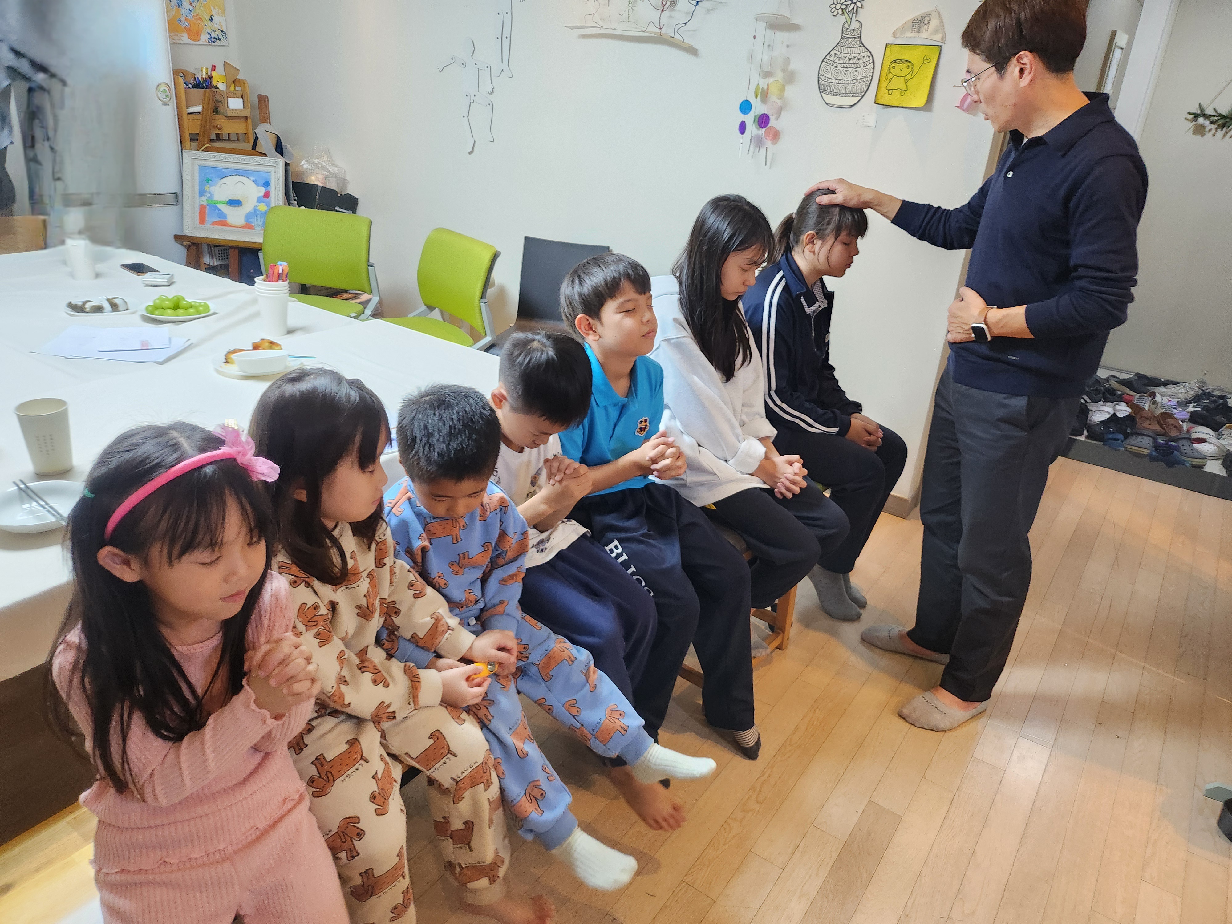 모두 다른 일상을 살아가지만 그 가운데 하나님을 의지하며 나아가는 우리의 공통된 모습을 나누고 공감하고 마음을 모을 수 있어서, 특별히 목사님과 사모님의 이야기를 가까이 앉아 듣고 기도할 수 있어 감사했고, 가정들을 위해 세심하게 한땀한땀 기도해주시는 목사님의 기도가 너무나 은혜가 되었고, 우리의 자녀들 한명한명 안수하며 기도해주셔서 감동과 감사가 넘치는 밤이었답니다.