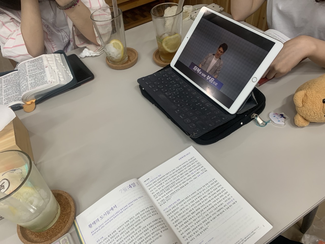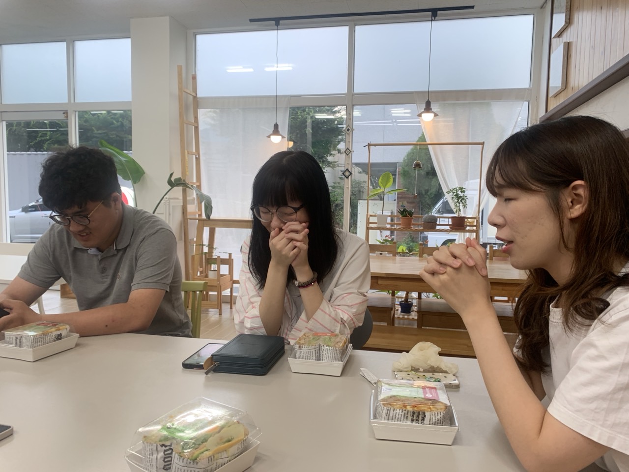 오늘은 이끌림케이크에서 주중목장 모임을 했습니다! 공간을 대여해주신 권용해 양선미 집사님 덕분에 쾌적한 공간에서 맛있는 음료와 샌드위치를 먹구 함께 나눔하는 시간도 가졌습니다! 새가족이신 서웅형제님이 처음 목장모임에 참여하여 함께 얘기 나누며 즐거운 시간을 보냈습니다~! 루다도 오랜만에 목장모임에 와서 함께 나눔할 수 있어 감사한 모임이었습니다 ㅎㅎ 새로운 가족들과 오지 않던 친구들을 보내주시는 하나님께 감사드립니다!