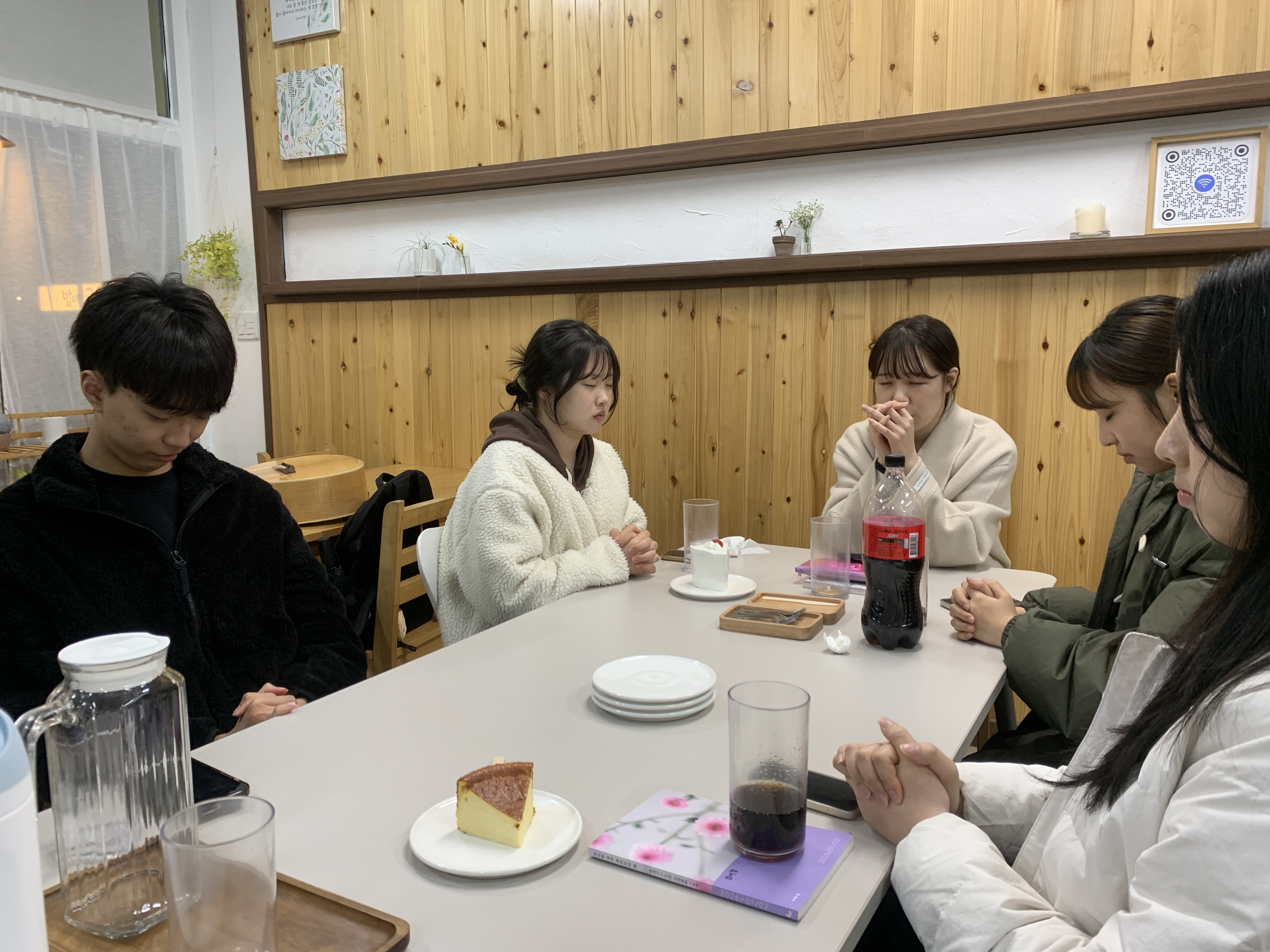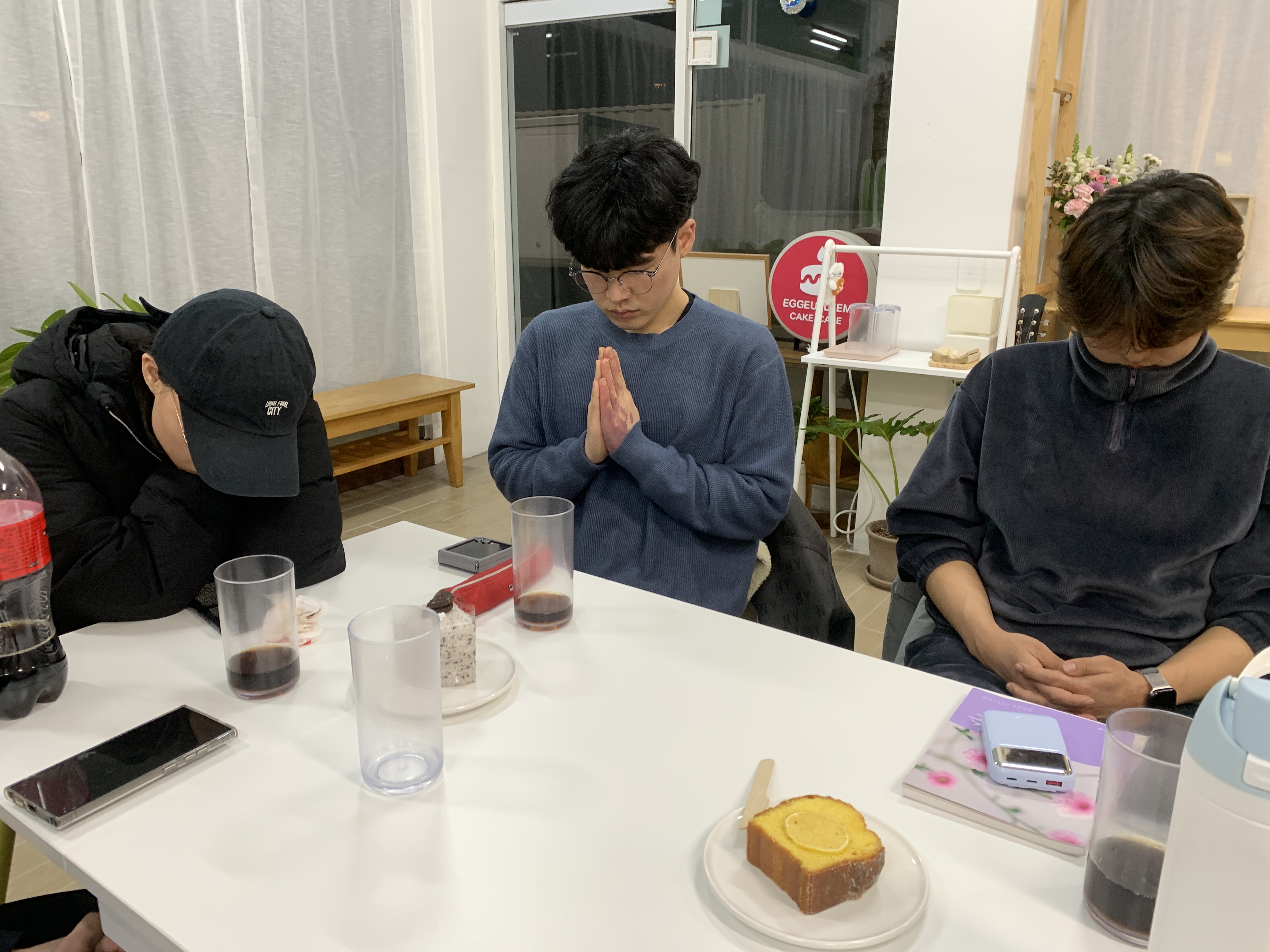 오늘 청년목장 모임은 특별히 말씀의 은혜가 가득한 시간이였어요. 소리가 작아서 폰 두 개로 동시에 오말묵을 틀어 함께 묵상을 했는데, 모두 목사님께서 전해주시는 말씀이 너무 좋다며 감사함을 나누었어요! 또 2월 생일자인 성령이와 호열오빠의 대학교 졸업을 축하하고 둘을 위해 기도하며 의미있는 파티를 했답니다 ㅎㅎ