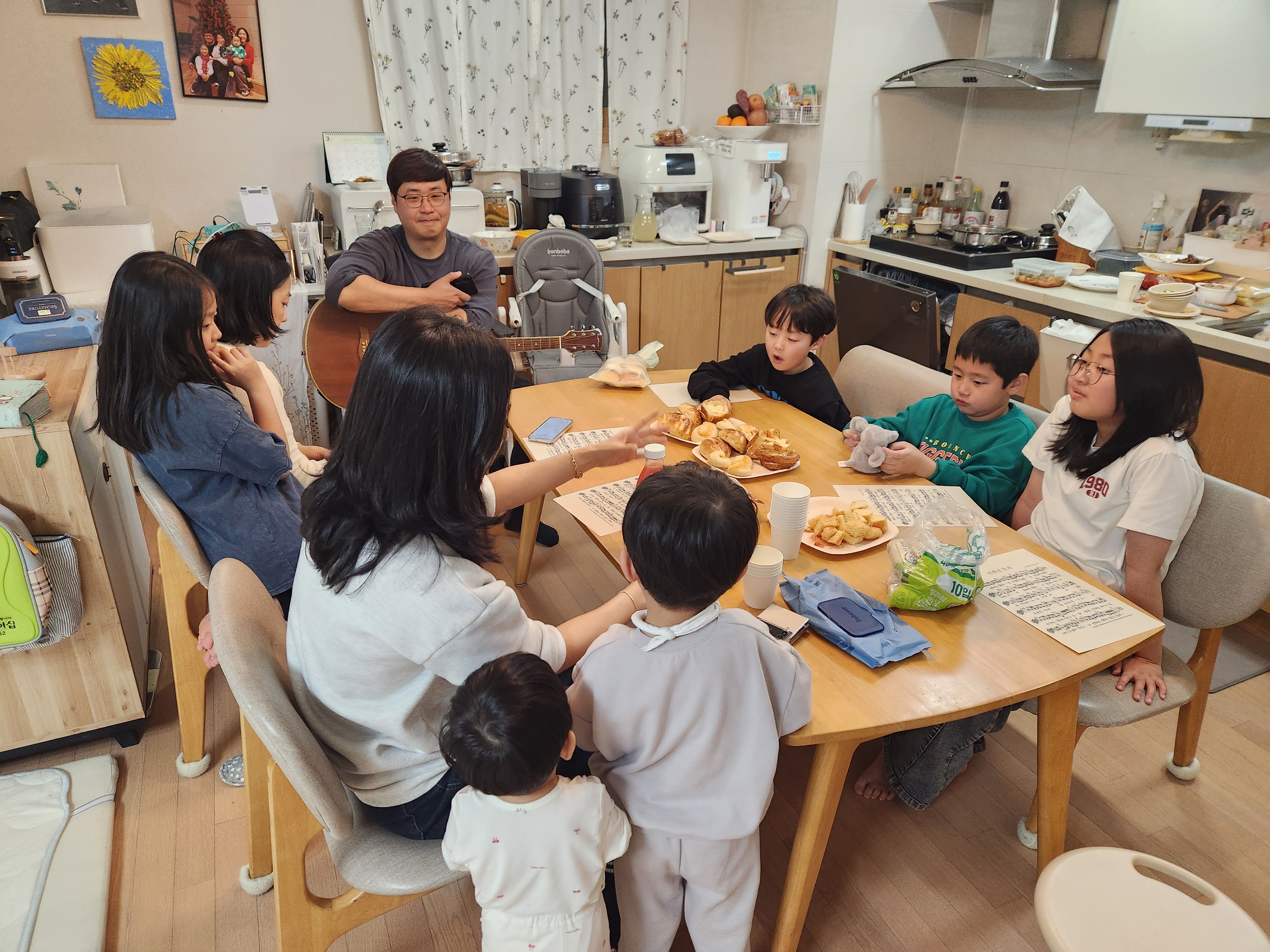 목자목녀님 가정에서 목장모임을 했어요^^ 목녀님이 정성껏 준비해주신 짜장밥을 맛있게 먹고 모임을 진행하였습니다. 우리 목장의 새가족인 이든이네 가정이 와주어서 더욱 풍성한 시간이었고 함께 모여서 이야기 나누고 웃으며 교제할 수 있어서 감사한 시간이었어요. 아이들도 금세 어울려 즐거운 시간을 보냈고 어른들도 편안한 분위기 속에서 서로의 삶을 나누며 따뜻한 시간이었어요. 함께 예배하고 교제할 수 있는 공동체가 있다는 것이 얼마나 큰 은혜인지 다시 느끼는 시간이었답니다^^ |