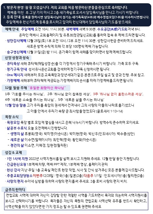 성탄감사예배 주보