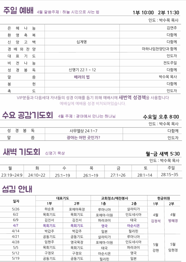 예배안내