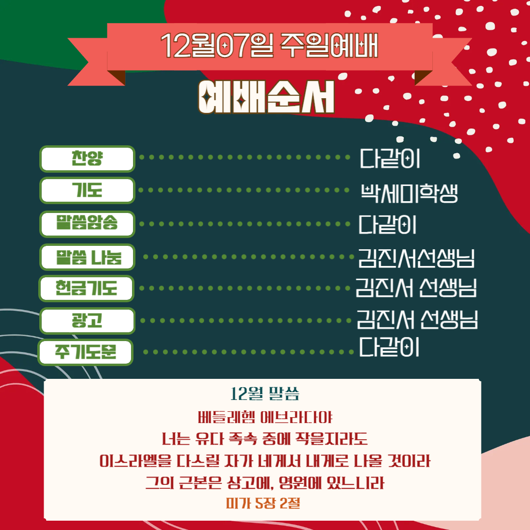 25년 12월7일 청소년부 주보